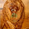 A powerful hand-carved lion wall art in rich natural wood, showcasing bold 3D detailing and a flowing mane—an iconic symbol of strength, intensity, and timeless craftsmanship.